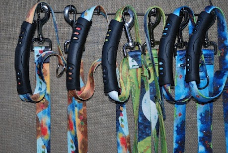 These are the Outside Dog Artwears leashes. The scenes come from my original painting called COMMUNITY that you can see in my 'watercolors' section. The leashes are made of washable nylon. To