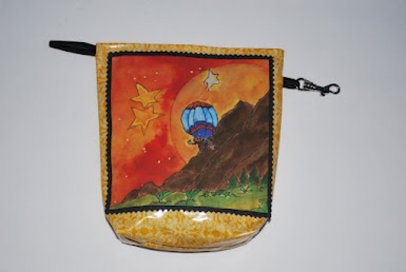 This is the Outside Dog Artwears Hide a Poo Bag. Don't get caught holding the bag! The scenes come from my original painting called COMMUNITY. They are made of laminated fabric and lined and can be