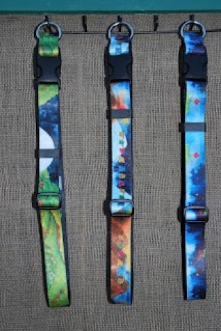 This is the Outside Dog Artwears Collar. The scenes are from my original painting called COMMUNITY. They are nylon. To order visit www.outsidedogartwears.com.