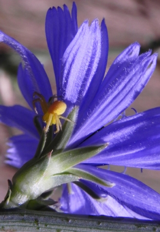 This Little Yellow Critter Spends Time in a Beautiful Chickory Plant.