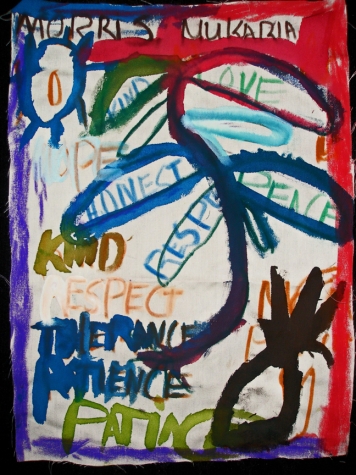 This is a painting done on muslin fabric that one of our Amani Children painted. Each piece was sewn into a wall hanging for their home in Meru, Kenya. These will be made into greeting cards soon. visit