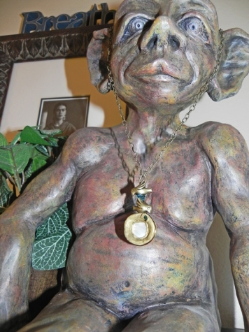 Front View of the 'Tiwaz' Rune Necklace. Created with Clay and Mother of Pearl, Swarovski Crystals, and Findings.