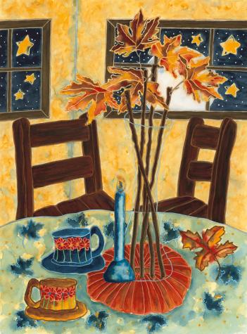'Stories' was inspired by the 'peace circles' created in Boulder, Colorado. The original is 3/D with multiple layers of watercolor paper. The original is available along with giclee prints.
