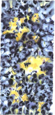 'Magic Stars' is actually the top 1/2 of 'The Dreamer'. If you look closely, her hair is at the bottom of the painting. Lamar Snowboards put their logo in the sky amongst the stars.