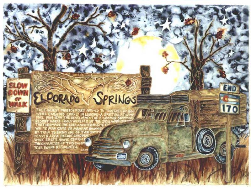 Shorty lived in his old truck in Eldorado Springs, Colorado. This painting was done for 'Hans' sweater catalog. The original is done in 3/D with multiple layers of watercolor paper. The original