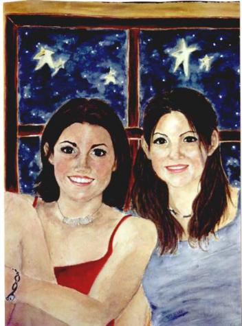 'Sisters' is an example of my unique watercolor portraits. Please contact me for your personal custom portraits.